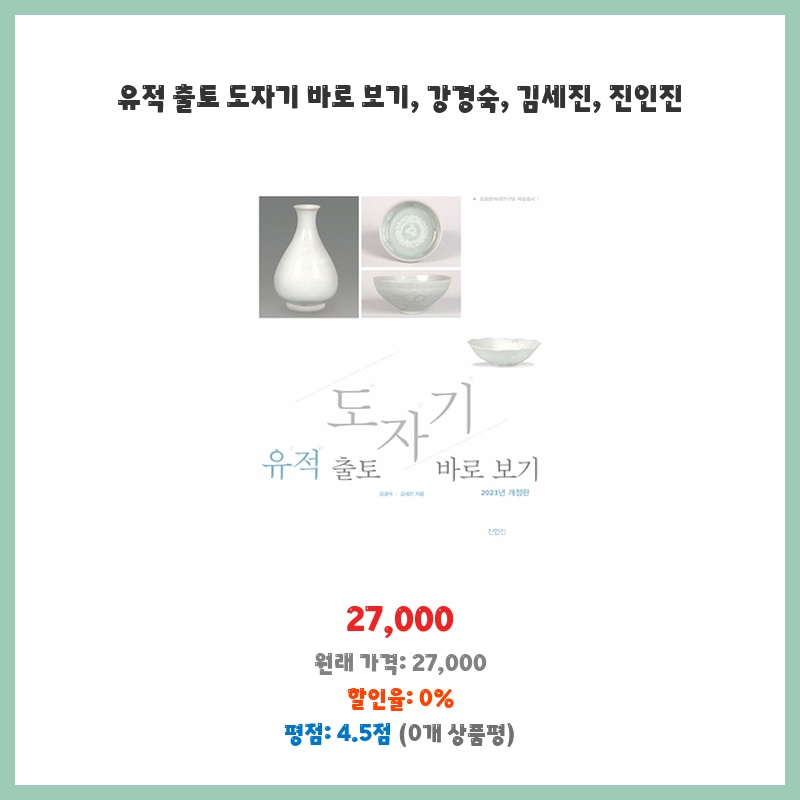 유적 출토 도자기의 역사적 가치와 예술적 아름다움에 매료되어 구매했습니다. 강경숙, 김세진, 진인진 세 작가의 공동 작업이라는 점도 매력적이었습니다. 책의 구성과 사진 품질도 뛰어나 보였습니다.
