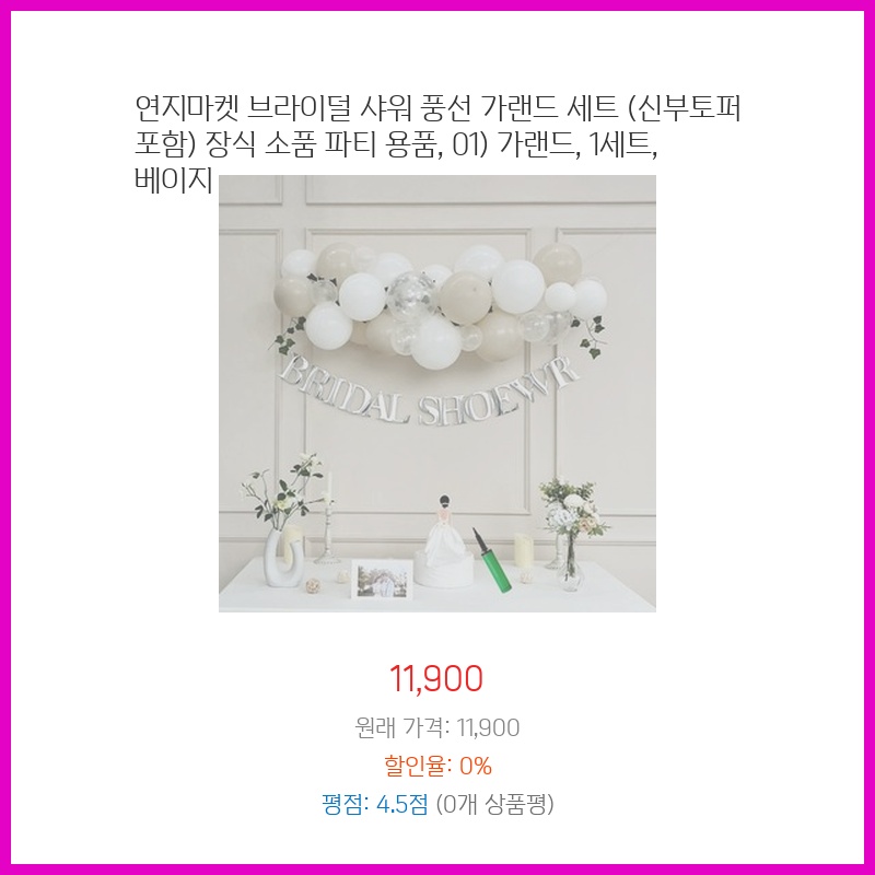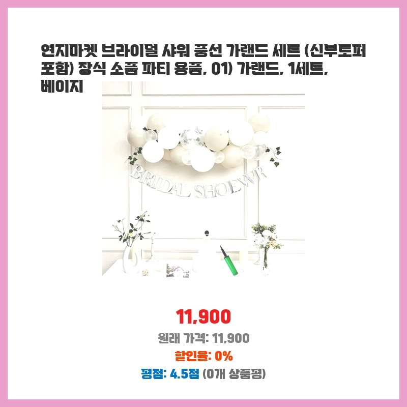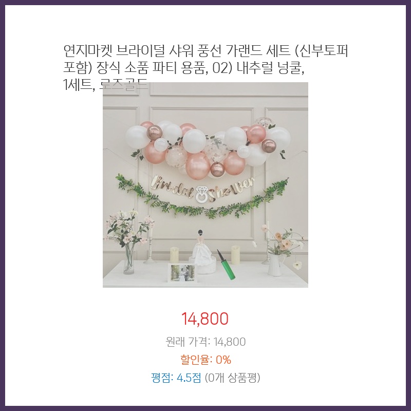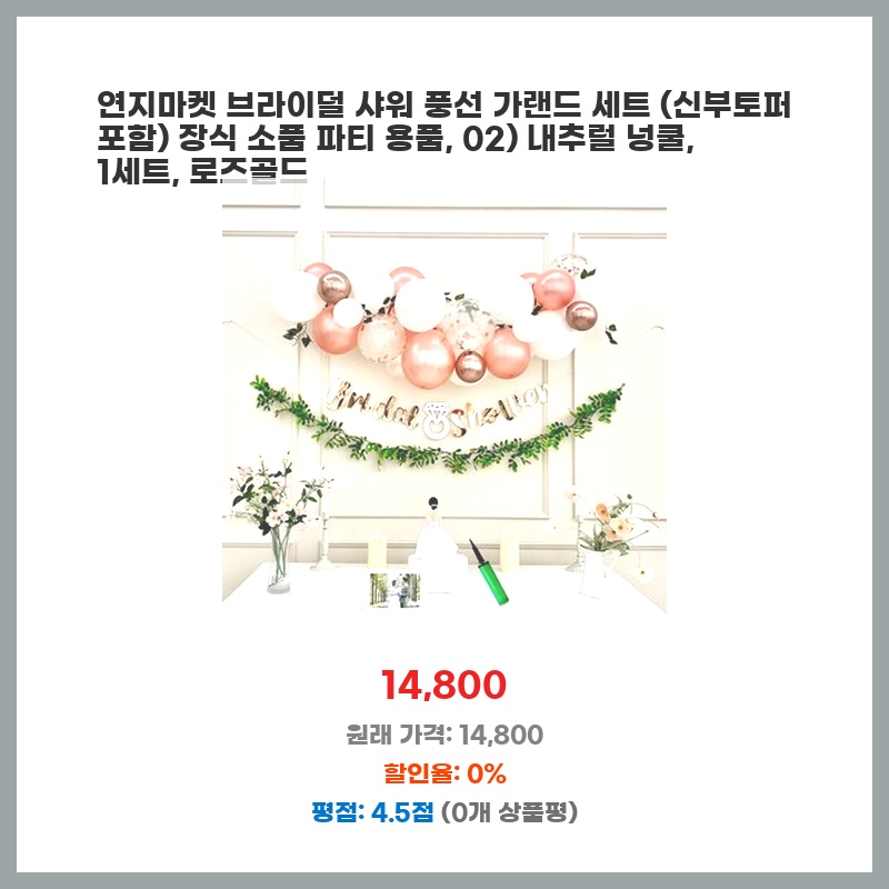 고객 후기 연지마켓 브라이덜 샤워 풍선 가랜드 세트 장식 소품 파티 용품 02) 내추럴 넝쿨 1세트 로즈골드 믿을 수 있는 후기