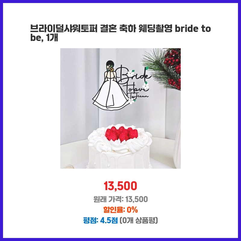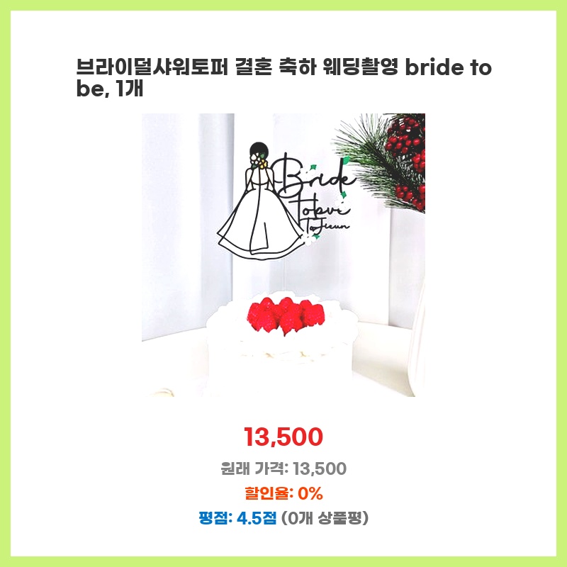 브라이덜 샤워 파티를 준비하며 예쁜 토퍼를 찾던 중 디자인이 깔끔하고 가격도 적당해서 구매했습니다. 사진 촬영에도 잘 어울릴 것 같아 만족스러워요. 크기도 적당하고, Bride to be 문구가 눈에 잘 띄어 좋습니다.