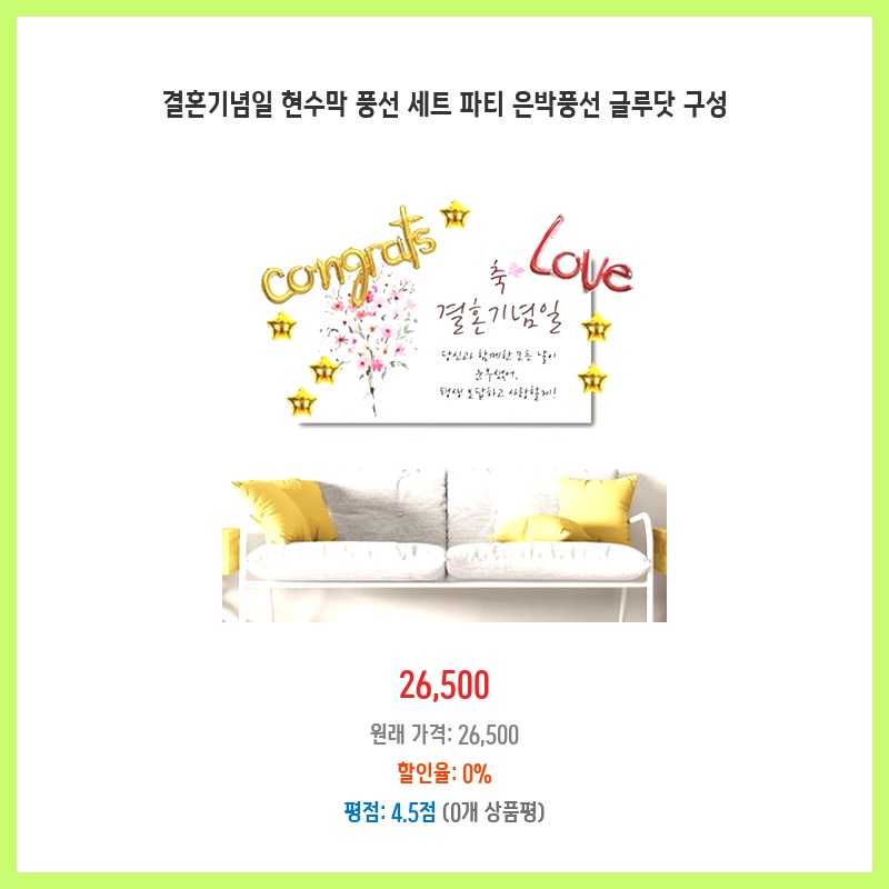 결혼기념일을 특별하게 장식하고 싶어 풍선 세트를 찾던 중, 은박 풍선과 글루닷까지 구성된 이 상품이 가격 대비 구성이 좋아 선택했습니다. 현수막까지 포함되어 따로 준비할 것이 없어 편리했습니다.
