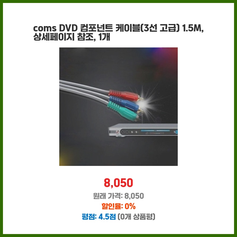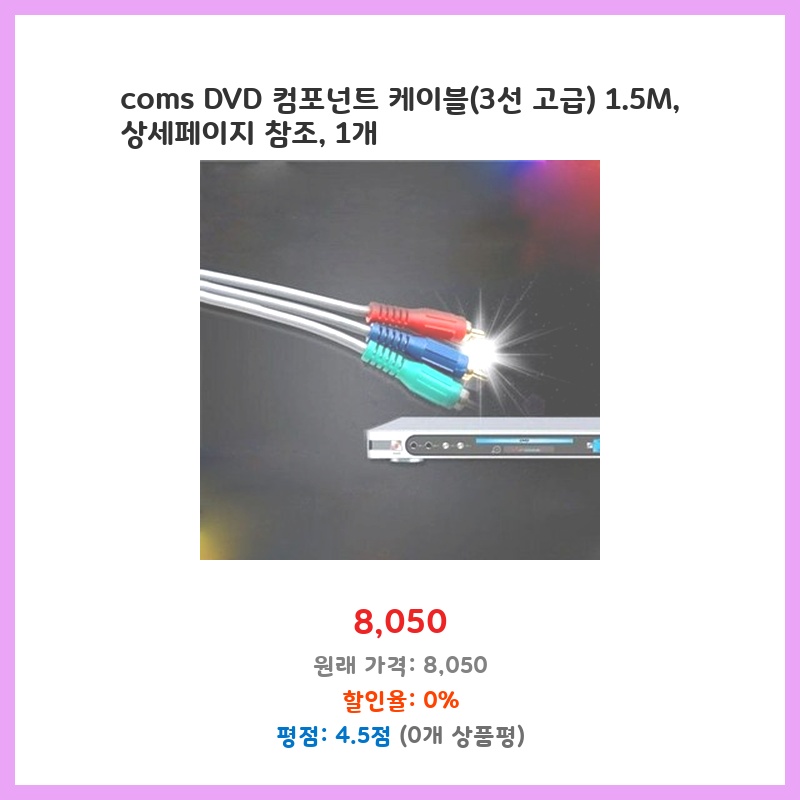 기존 케이블의 화질이 불만족스러워 고급 컴포넌트 케이블을 찾던 중, 3선으로 안정적인 신호 전달을 기대하며 구매했습니다. 1.5M 길이도 적당하고 가격도 합리적이어서 선택했습니다.