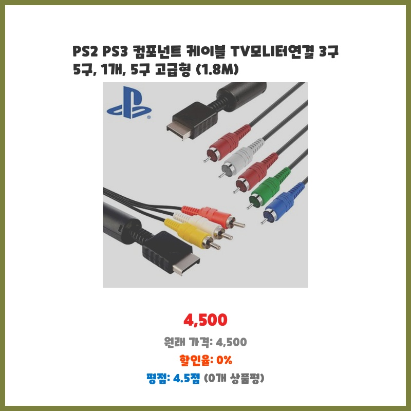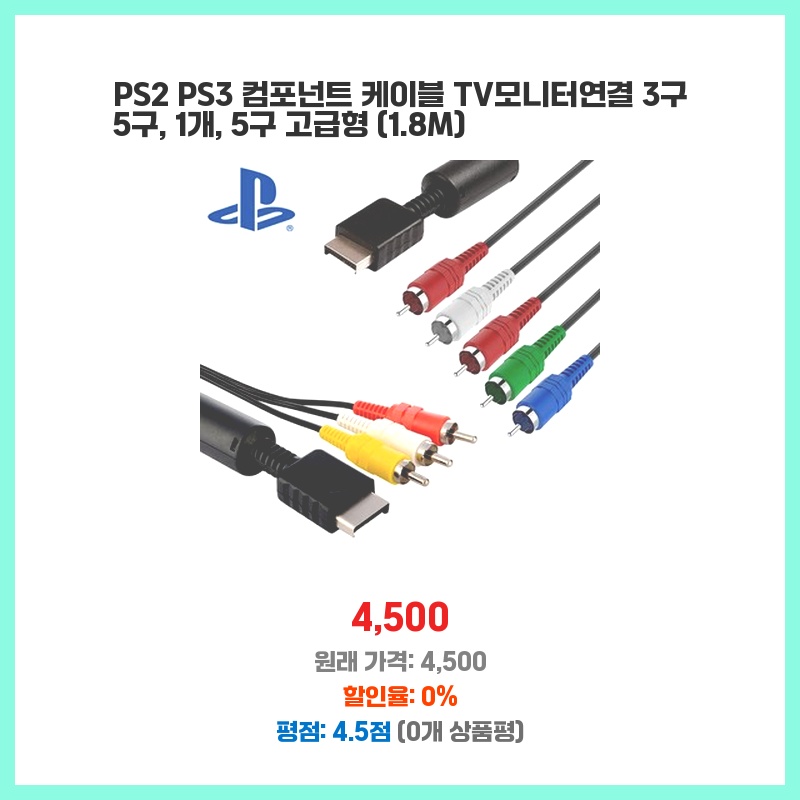 PS2케이블, PS3케이블, 컴포넌트케이블, TV연결케이블, 고급형케이블, PS2연결, PS3연결