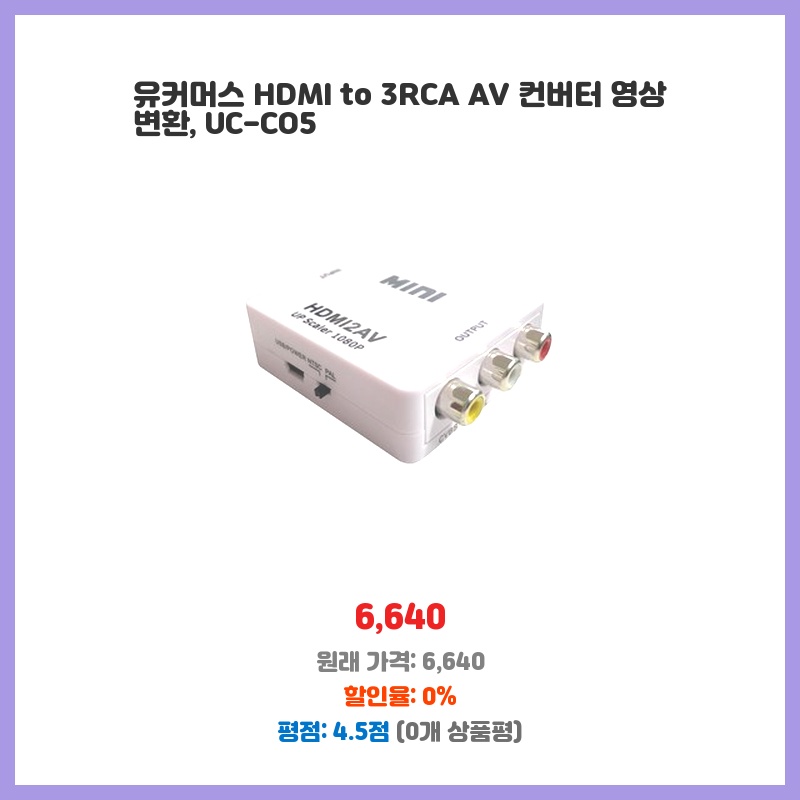 유커머스 HDMI to 3RCA AV 컨버터 영상 변환, UC-CO5