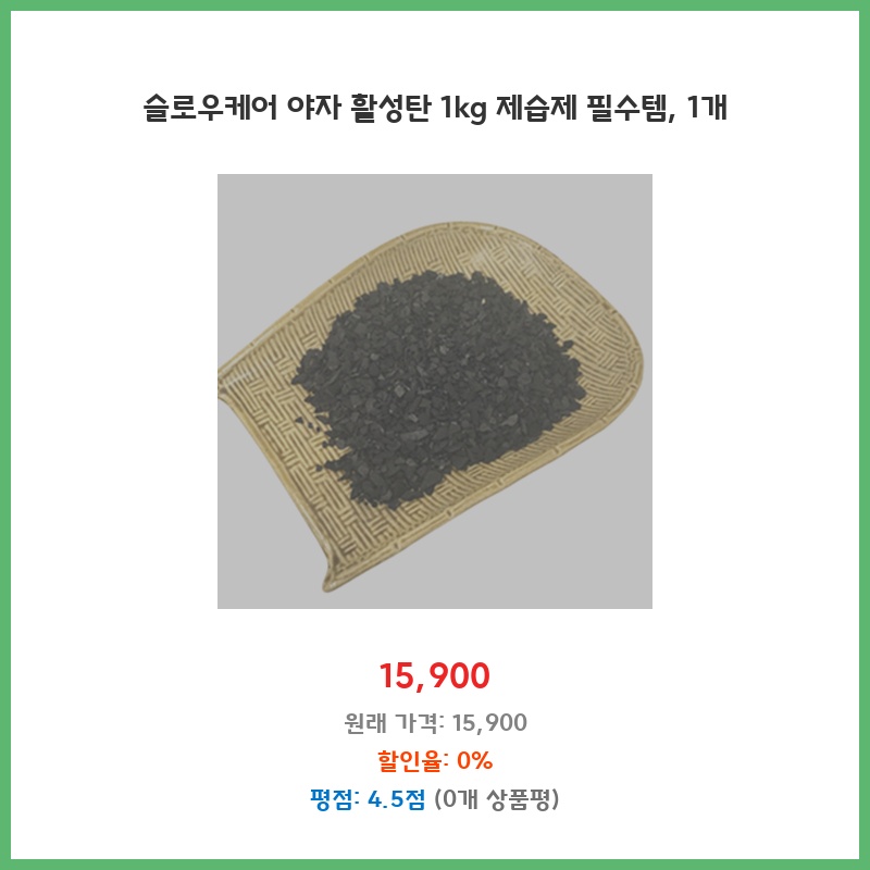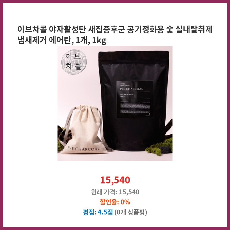 새집 증후군이 심해 탈취 효과 좋은 제품을 찾던 중 야자활성탄의 흡착력에 끌려 구매했습니다. 1kg의 넉넉한 용량과 숯 특유의 자연스러운 탈취 효과가 기대됩니다. 화학 탈취제보다 안전한 점도 마음에 들었습니다.