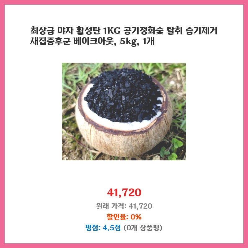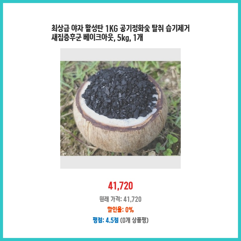 새집으로 이사와서 새집증후군이 걱정되어 믿을 수 있는 야자 활성탄을 찾던 중, 용량도 크고 가격 대비 효율이 좋아 구매했습니다. 습기 제거에도 효과가 있다고 하여 기대하고 있습니다. 후기들을 보니 탈취 효과도 좋다는 평이 많았습니다.