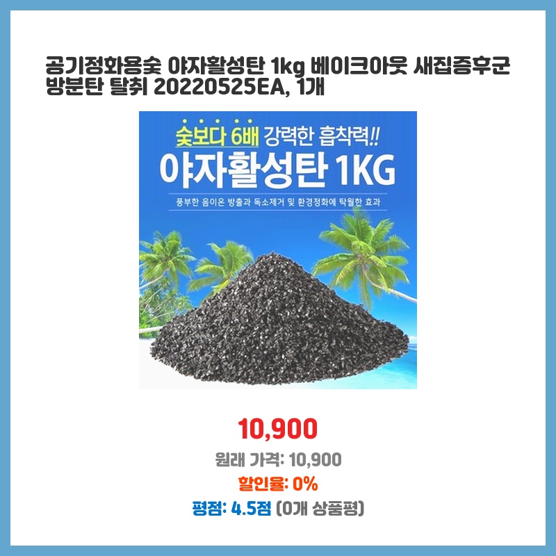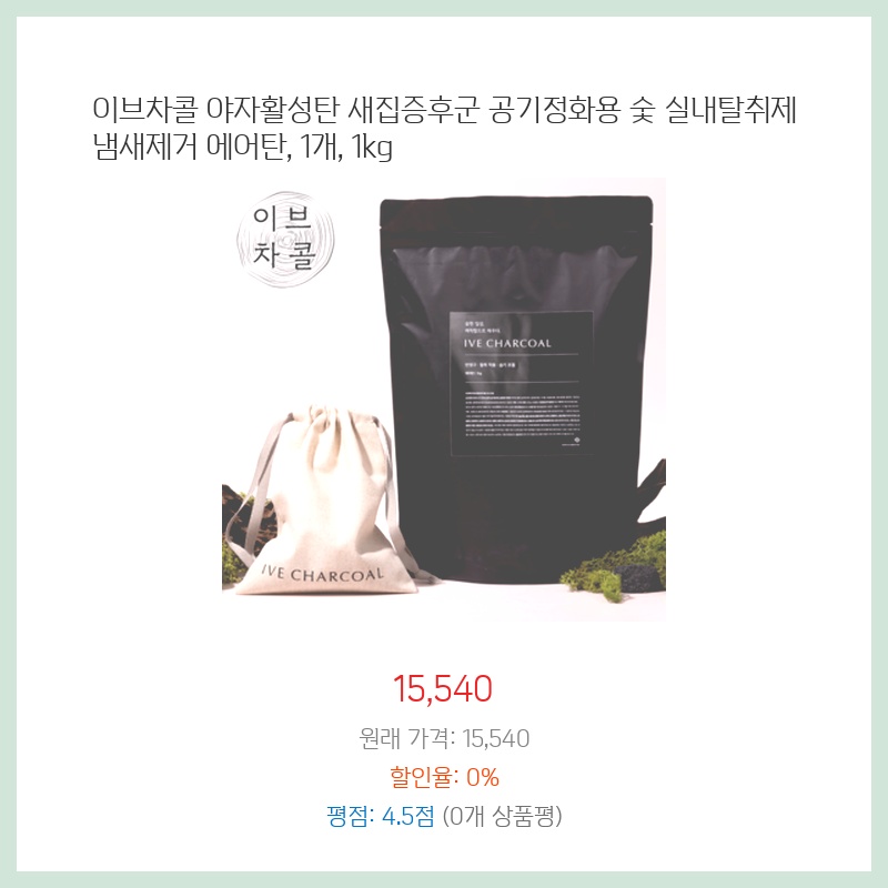새집으로 이사와서 새집증후군이 걱정되어 공기정화에 효과적인 야자활성탄을 찾던 중 가격 대비 용량이 큰 이 제품을 선택했습니다. 베이크아웃 후 잔류 냄새 제거에도 도움이 될 것 같아 기대됩니다. 1kg이라 오래 사용할 수 있을 것 같아요.