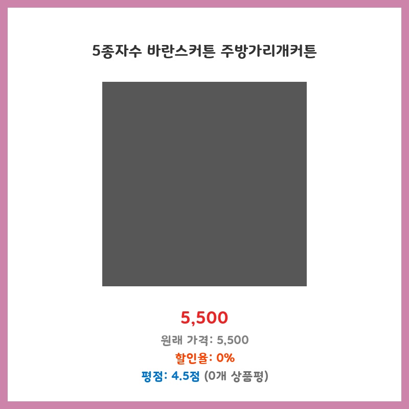 5종자수 바란스커튼 주방가리개커튼
