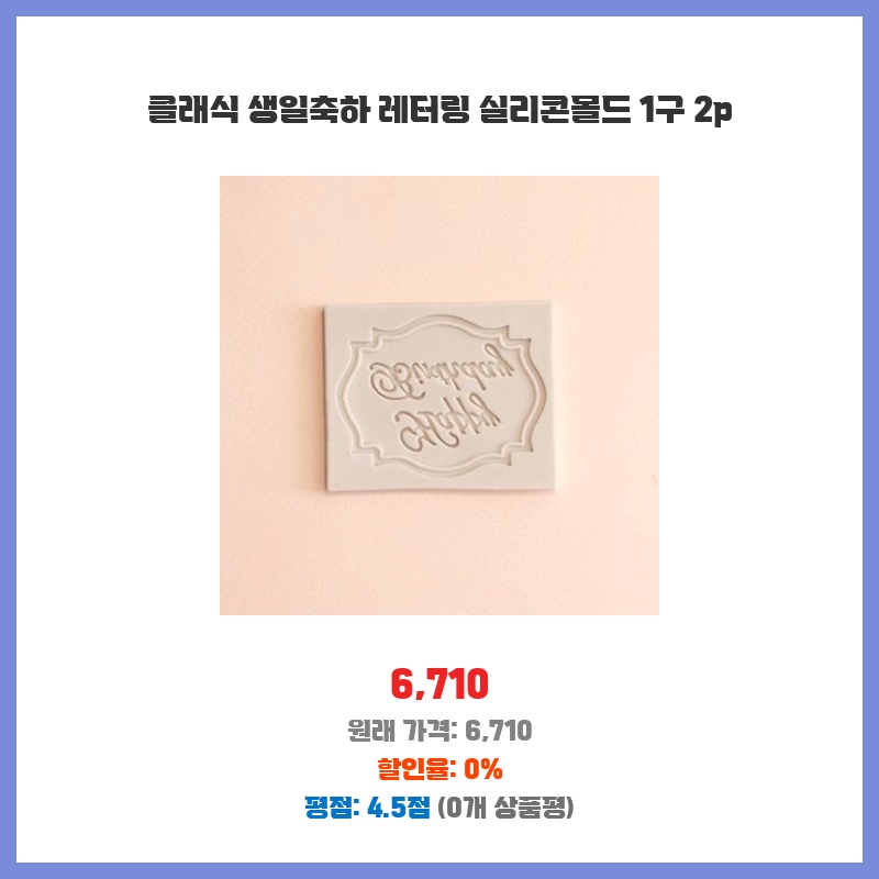 클래식 생일축하 레터링 실리콘몰드 1구 2p