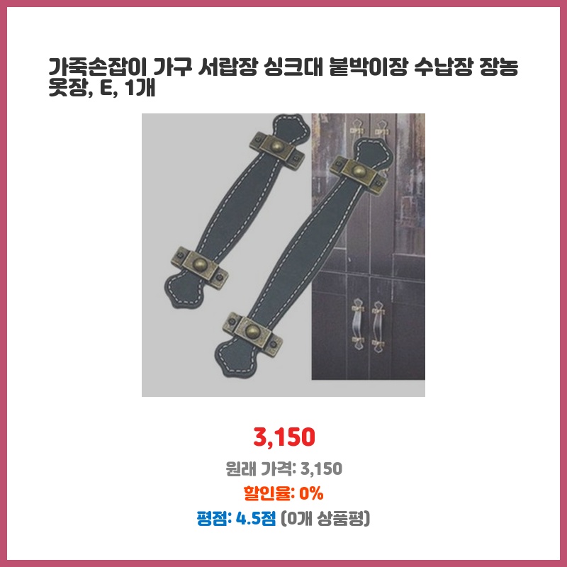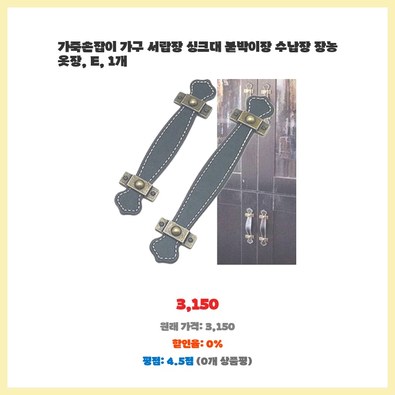 가죽손잡이 가구 서랍장 싱크대 붙박이장 수납장 장농 옷장, E, 1개