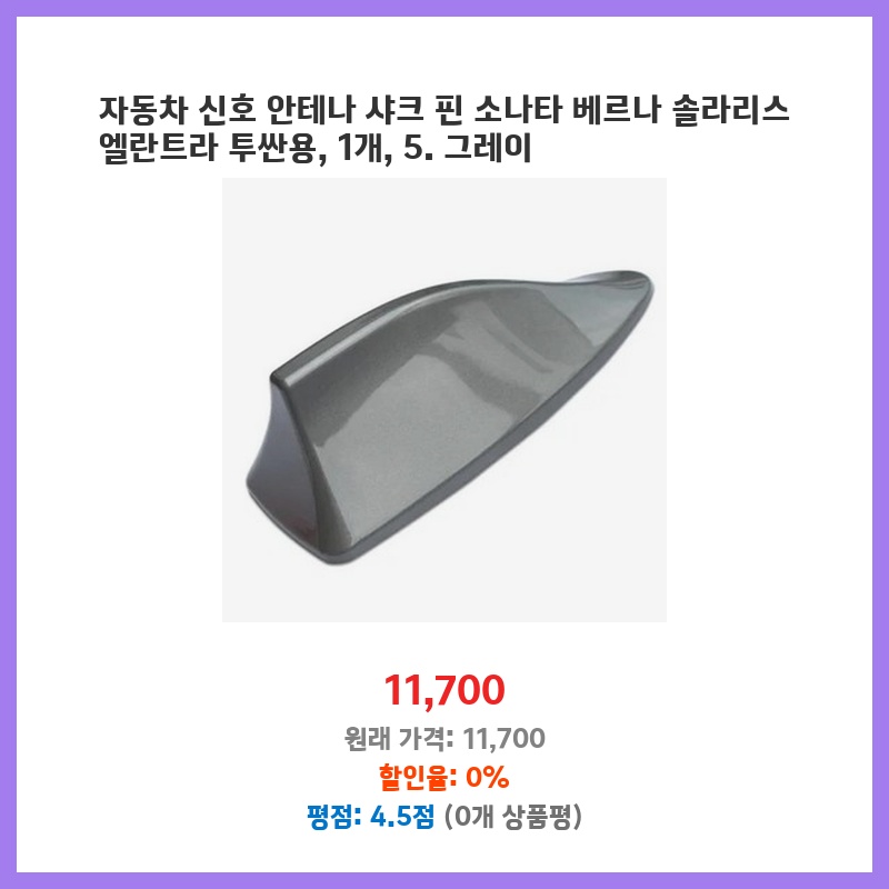 기존 안테나보다 디자인이 훨씬 세련되어 차량 외관이 한층 업그레이드되었습니다. 작지만 깔끔한 디자인이 마음에 들고, 수신 감도 저하 없이 잘 작동합니다. 가격 대비 만족스러운 제품입니다.