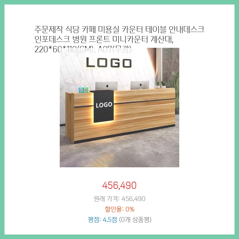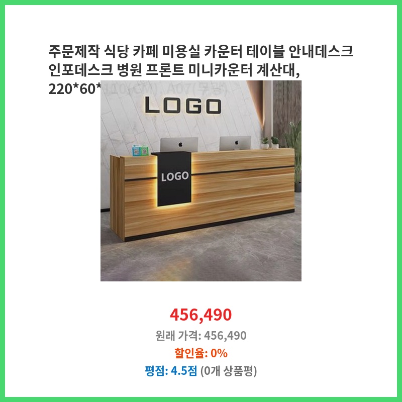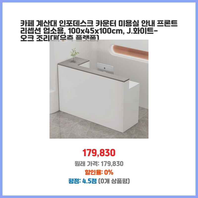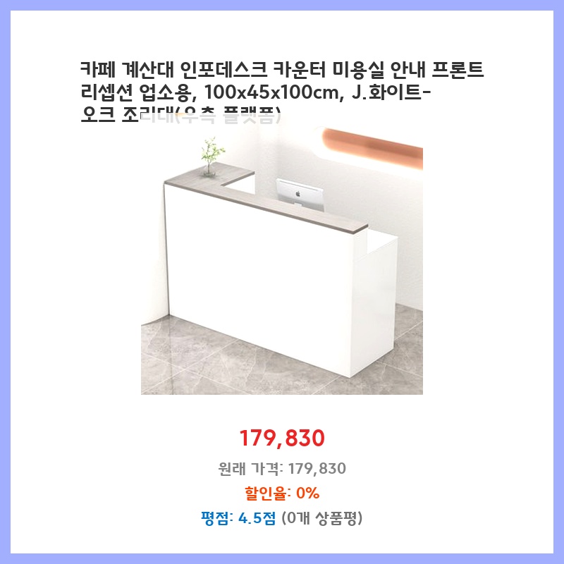 높은 만족도 주문제작 식당 카페 미용실 카운터 테이블 안내데스크 인포데스크 병원 프론트 미니카운터 계산대 220*60*110 A07 바로 적용되는 혜택
