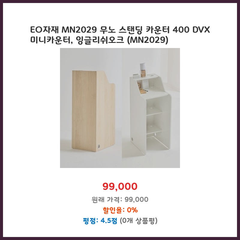 EO자재 MN2029 무노 스탠딩 카운터 400 DVX 미니카운터, 잉글리쉬오크 (MN2029)