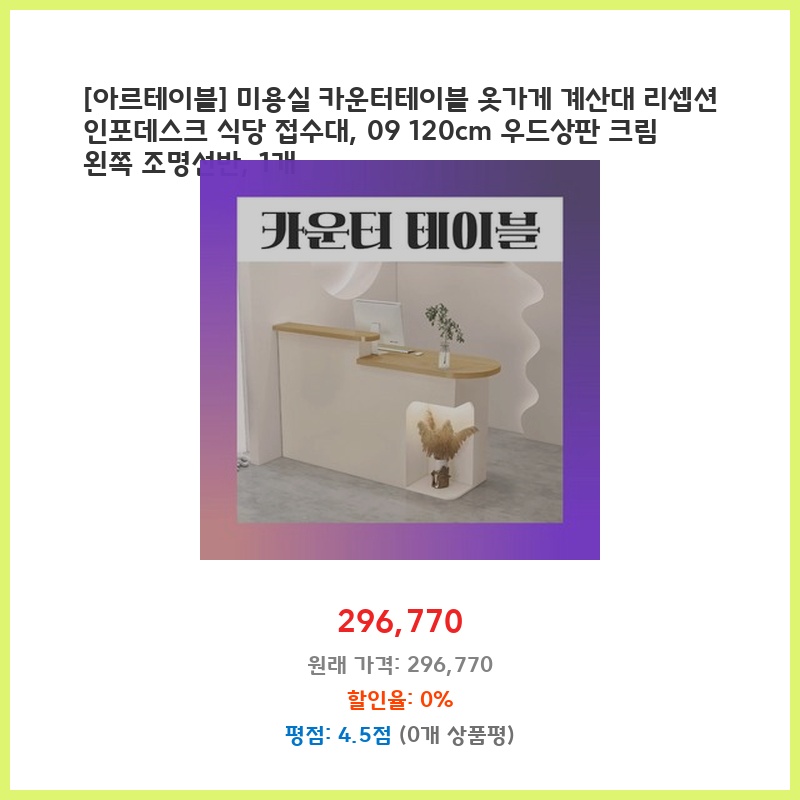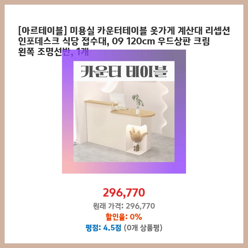 [아르테이블] 미용실 카운터테이블 옷가게 계산대 리셉션 인포데스크 식당 접수대, 09 120cm 우드상판 크림 왼쪽 조명선반, 1개