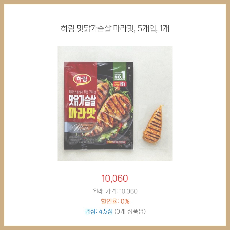 생각보다 맵지 않고 맛있었습니다! 닭가슴살 특유의 퍽퍽함도 덜하고, 마라향이 은은하게 나서 좋았어요. 다이어트 간식으로 딱입니다.