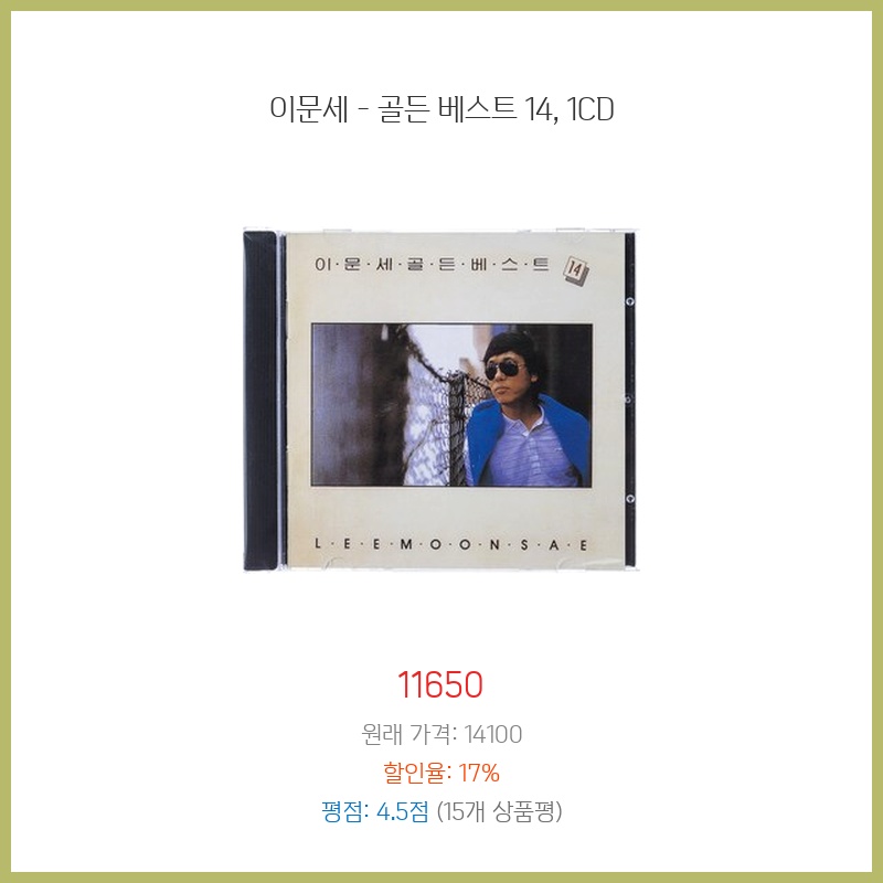 이문세 선생님의 명곡들을 한 장의 CD에 담았다는 점이 매력적이었습니다. 가격도 부담 없고, 오랫동안 좋아했던 곡들을 다시 감상할 수 있어 구매했습니다. 차 안에서 듣기에도 좋습니다.
