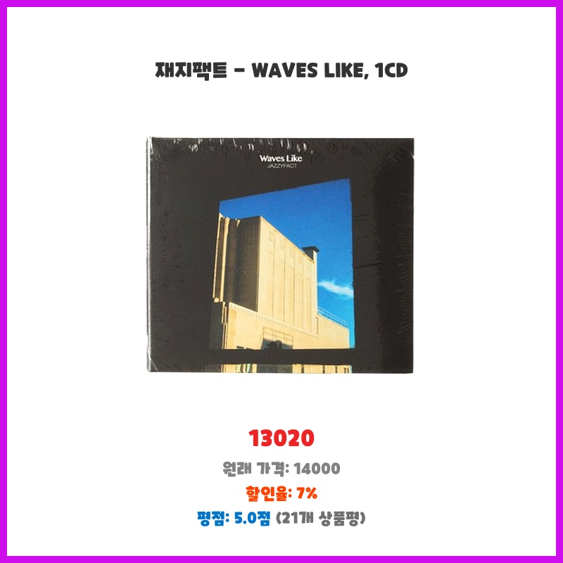 재지팩트의 WAVES LIKE 앨범이 궁금했고, 평소 좋아하는 아티스트의 음악을 CD로 소장하고 싶어서 구매했습니다. 고음질 음원을 감상할 수 있다는 점이 매력적이었습니다.