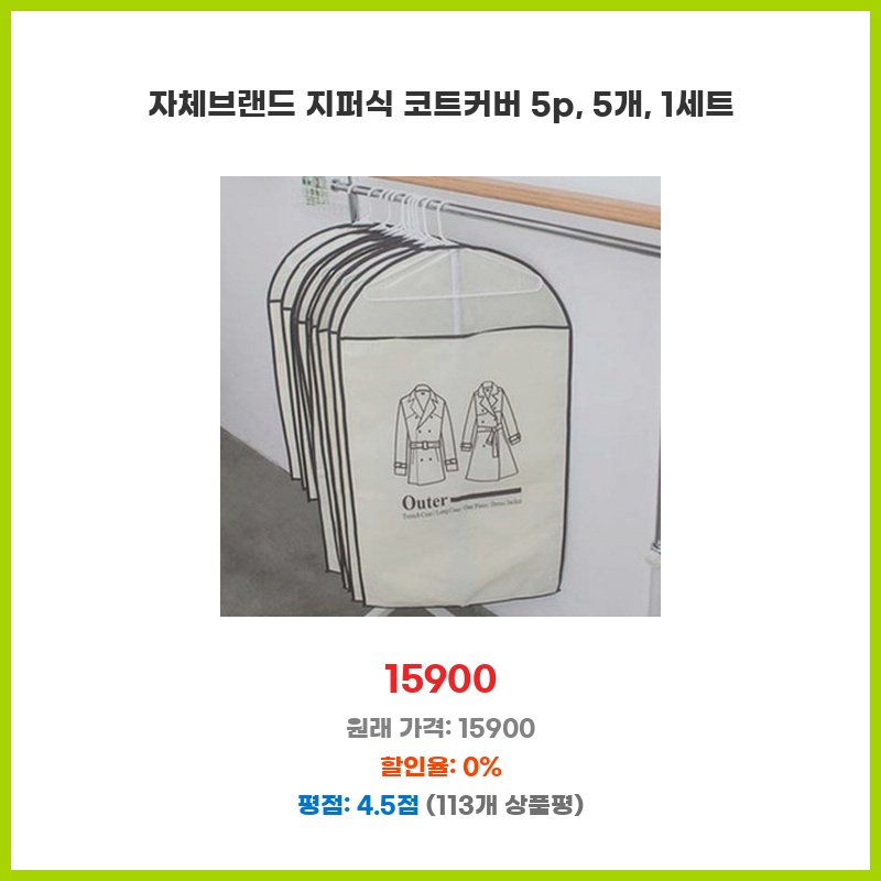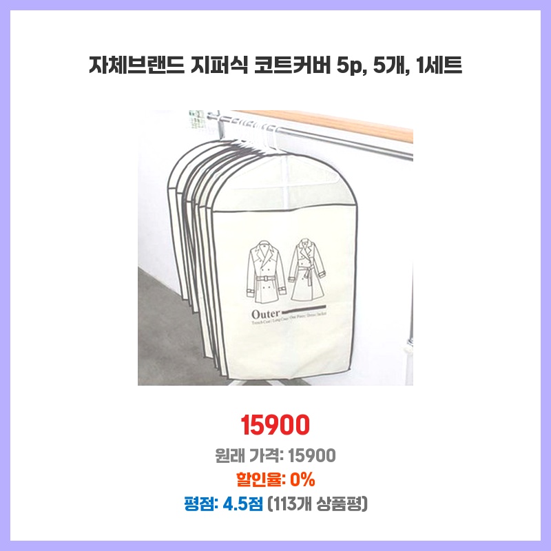 옷장이 좁아 코트 보관이 어려웠는데, 5개 세트라 여러 겨울 코트를 깔끔하게 정리할 수 있어서 구매했습니다. 지퍼형이라 먼지 유입도 막아주고, 꺼내 쓰기도 편리할 것 같아요. 가격도 저렴해서 부담 없었습니다.