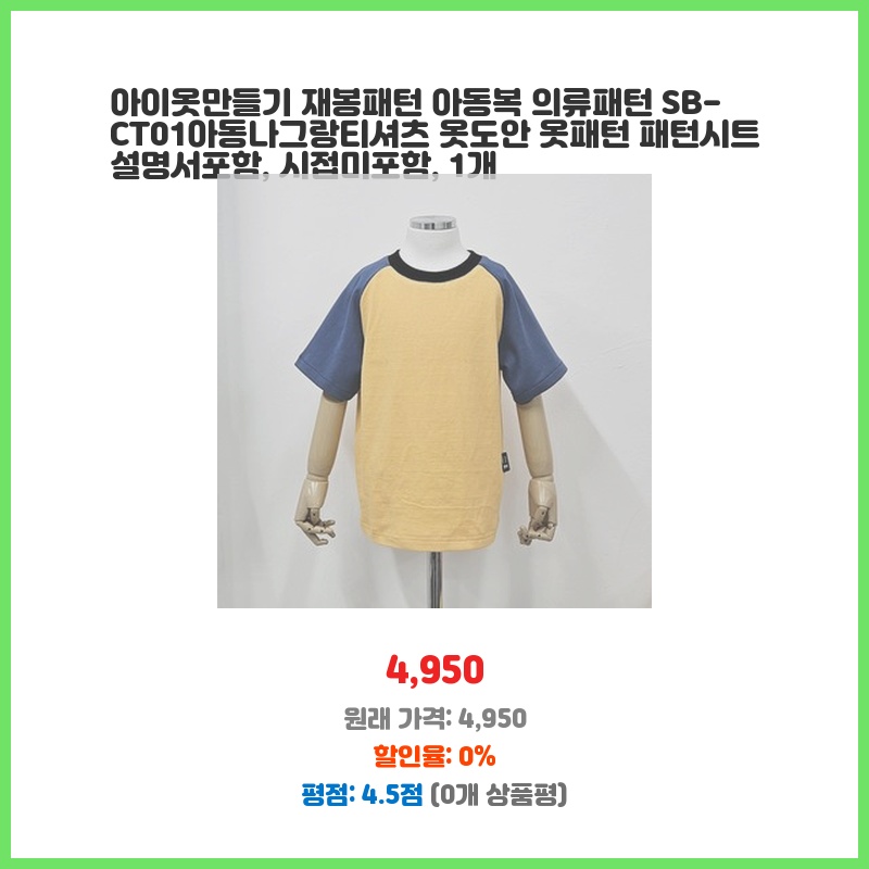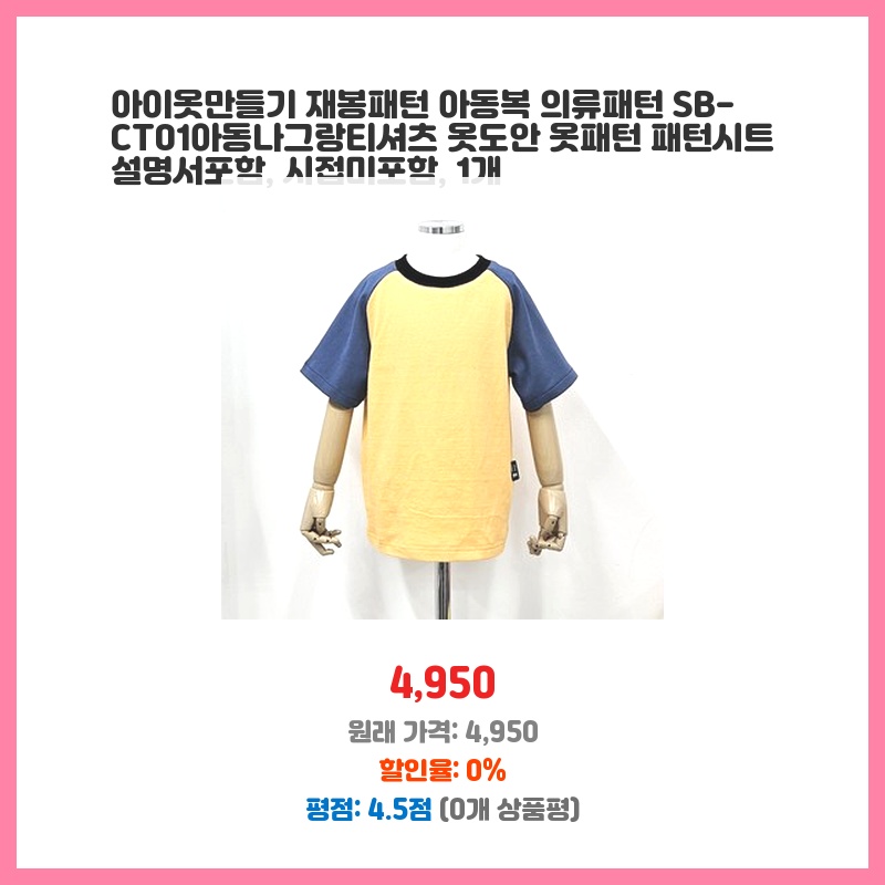 아이옷만들기 재봉패턴 아동복 의류패턴 SB-CT01아동나그랑티셔츠 옷도안 옷패턴 패턴시트 설명서포함, 시접미포함, 1개