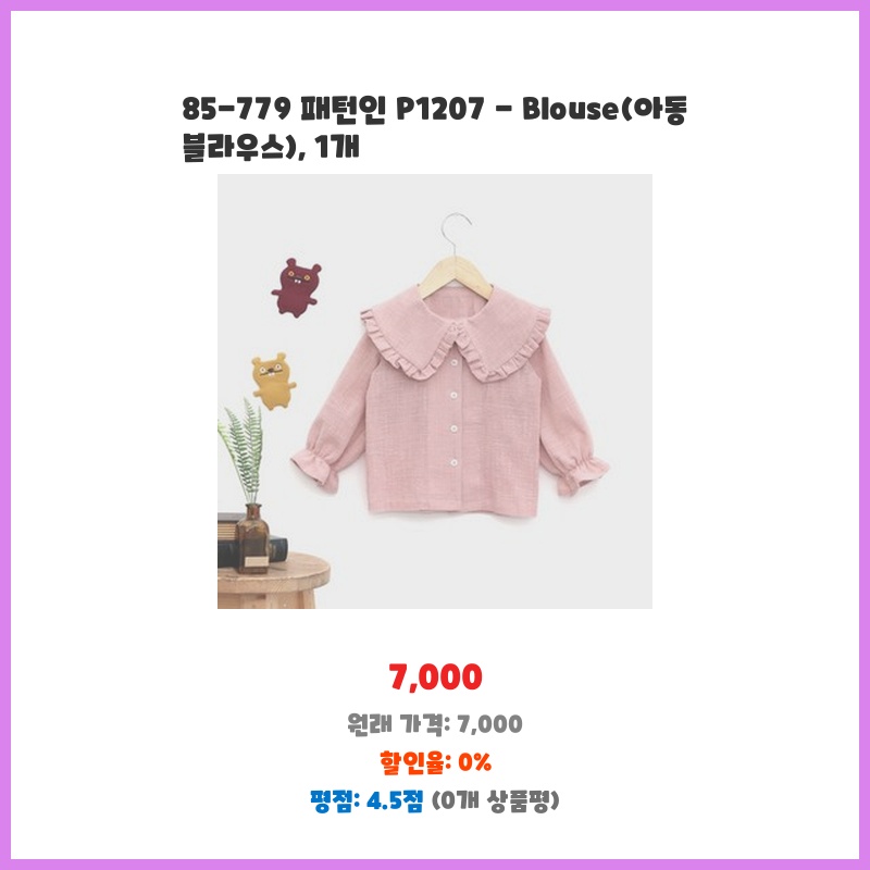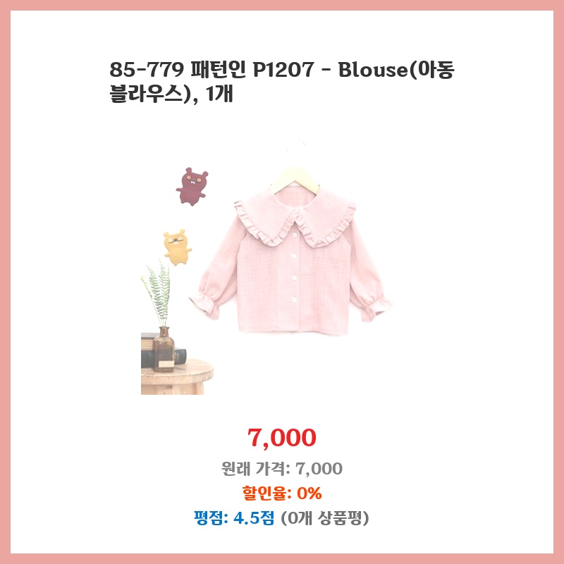 85-779 패턴인 P1207 - Blouse(아동 블라우스), 1개