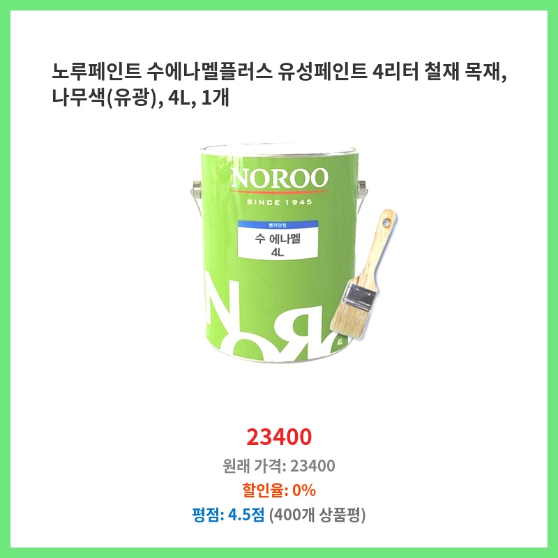철재 울타리를 칠하려고 유성페인트를 찾던 중, 노루페인트의 품질과 나무색 유광 마감이 마음에 들어 구매했습니다. 4L 용량으로 작업량도 충분할 것 같아서 선택했습니다. 내구성이 좋아 오래 사용할 수 있을 것으로 기대합니다.