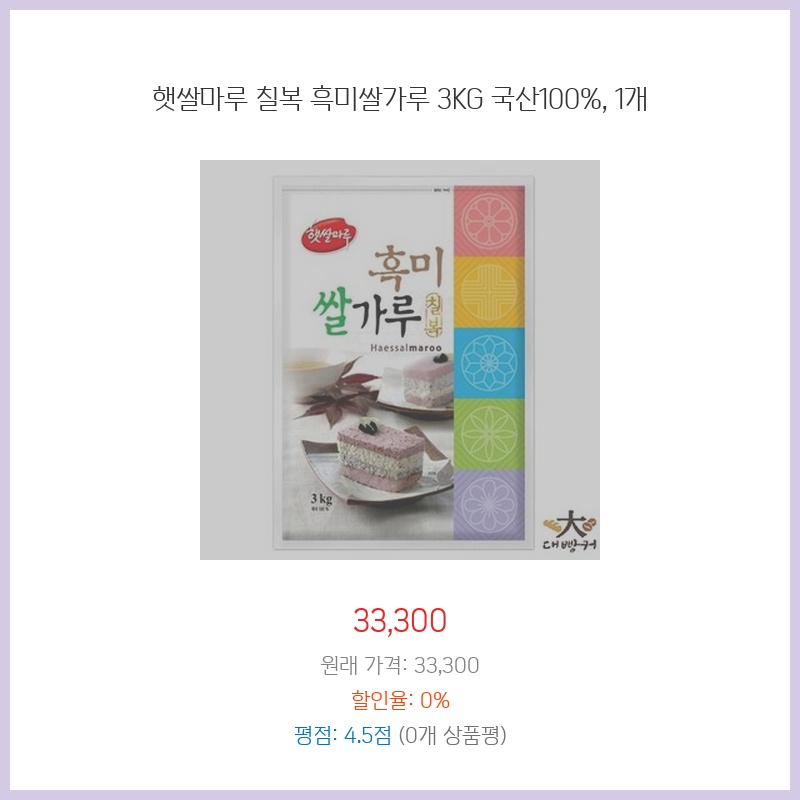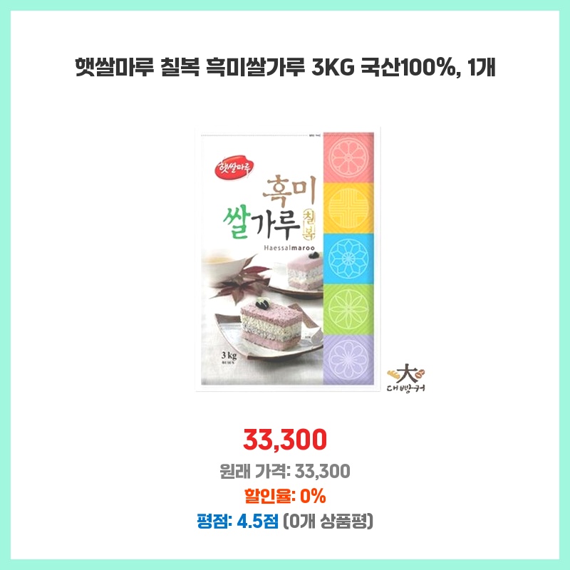 햇쌀마루 칠복 흑미쌀가루 3KG 국산100%, 1개