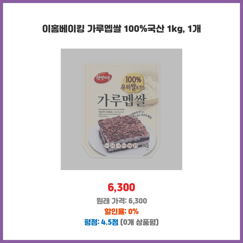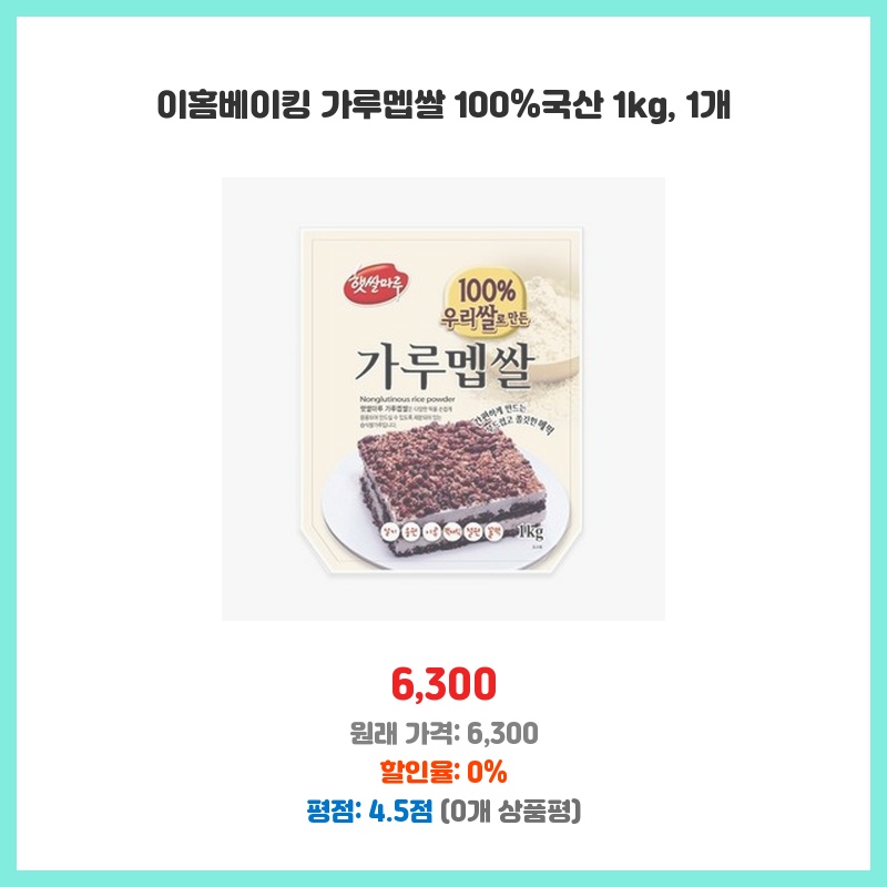 100 국산 멥쌀로 만들어 안심하고 사용할 수 있어 구매했습니다. 가루 형태라 사용이 편리하고, 떡이나 쿠키 등 다양한 베이킹에 활용 가능해서 좋습니다. 1kg 용량으로 가성비도 괜찮은 편입니다.