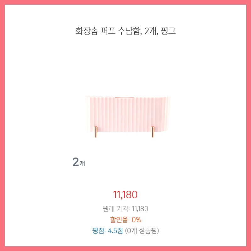 화장솜과 퍼프를 정리하기 위해 구매했습니다. 2개 세트라 화장대 정리가 편리하고, 핑크 색상이 예뻐서 화장대 분위기까지 좋아졌습니다. 크기가 적당해서 공간 차지도 많지 않습니다.