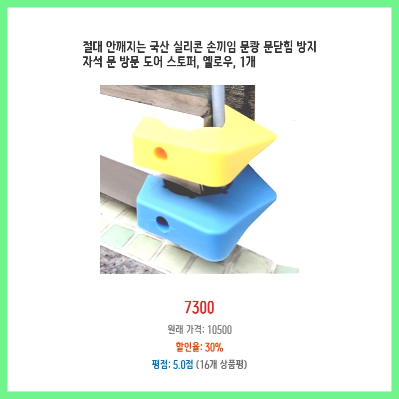 아이가 문에 손을 끼는 사고를 방지하고 싶어서 구매했습니다. 국산 실리콘이라 안전해 보이고, 자석 방식이라 편리할 것 같았습니다. 문 손상 없이 사용할 수 있다는 점도 마음에 들었습니다.