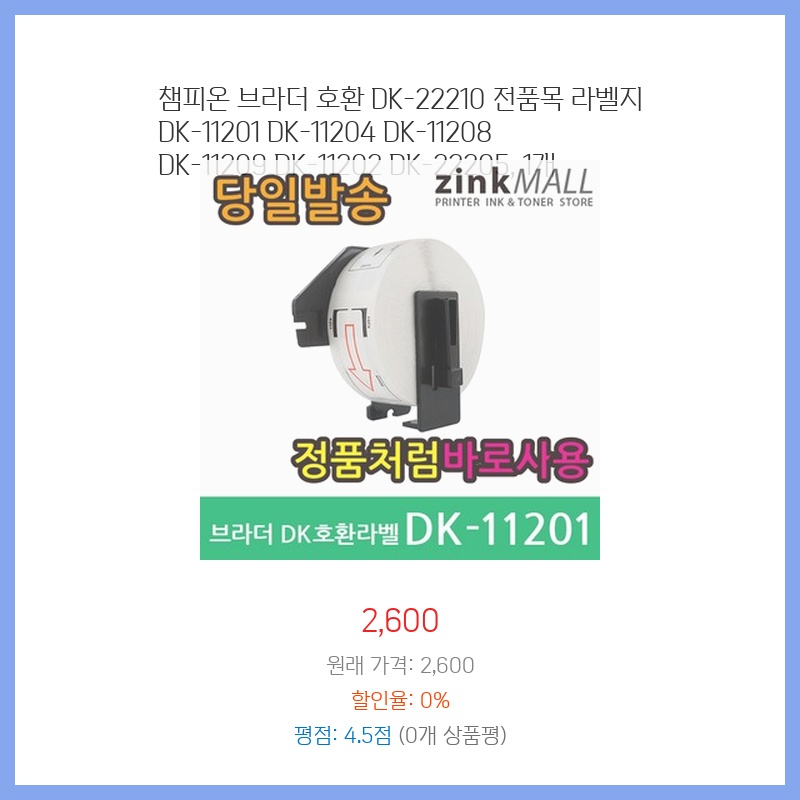 챔피온 브라더 호환 DK-22210 전품목 라벨지 DK-11201 DK-11204 DK-11208 DK-11209 DK-11202 DK-22205, 1개