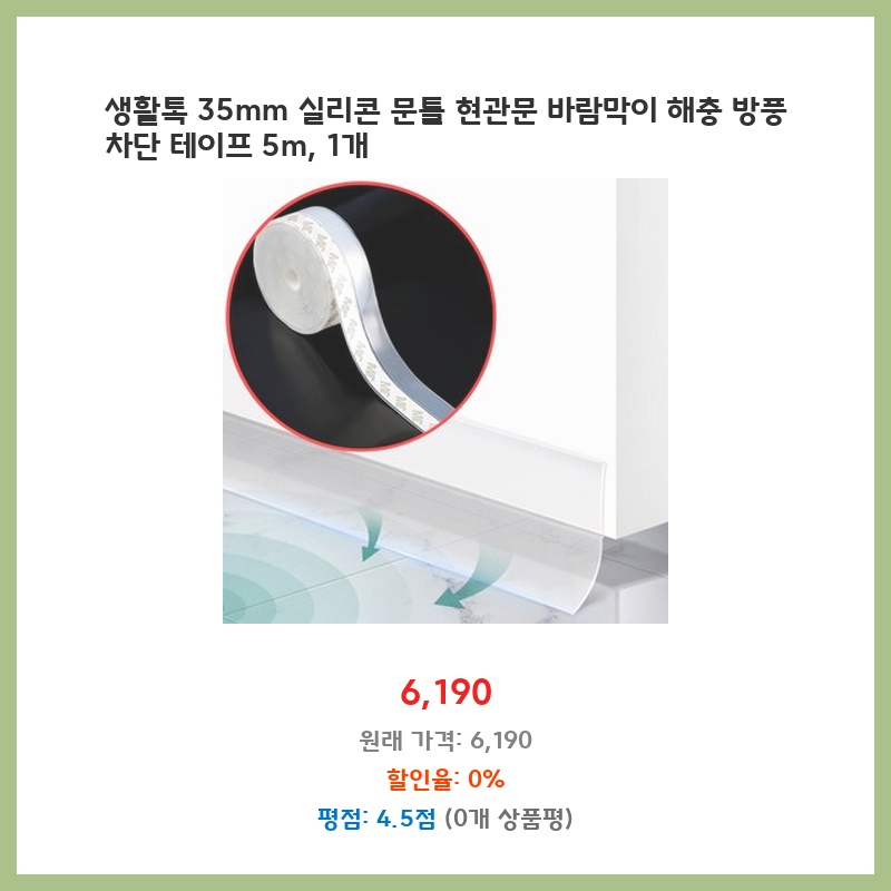 설치도 간편하고, 확실히 바람이 덜 들어옵니다! 덕분에 겨울철 난방비 절약에도 도움이 될 것 같아 만족스럽습니다.
