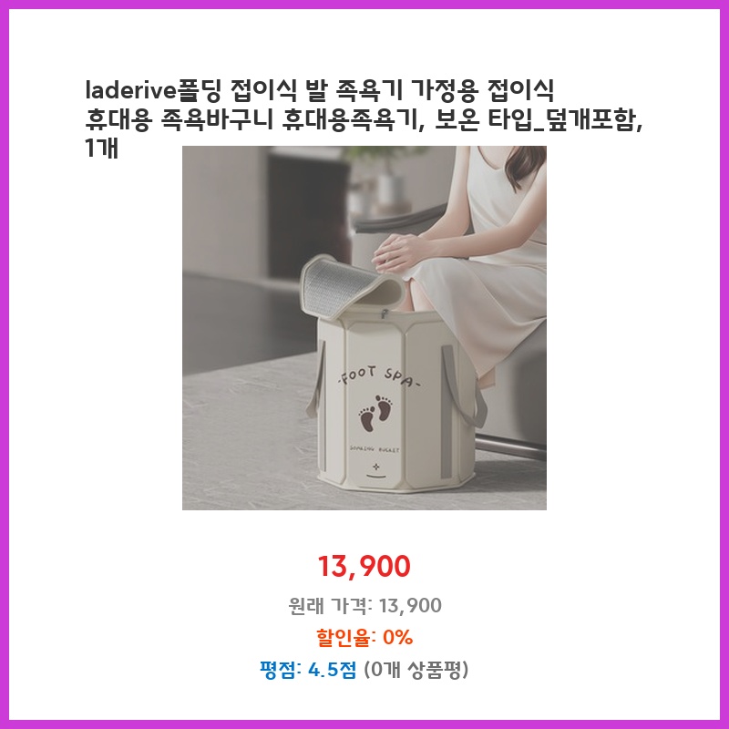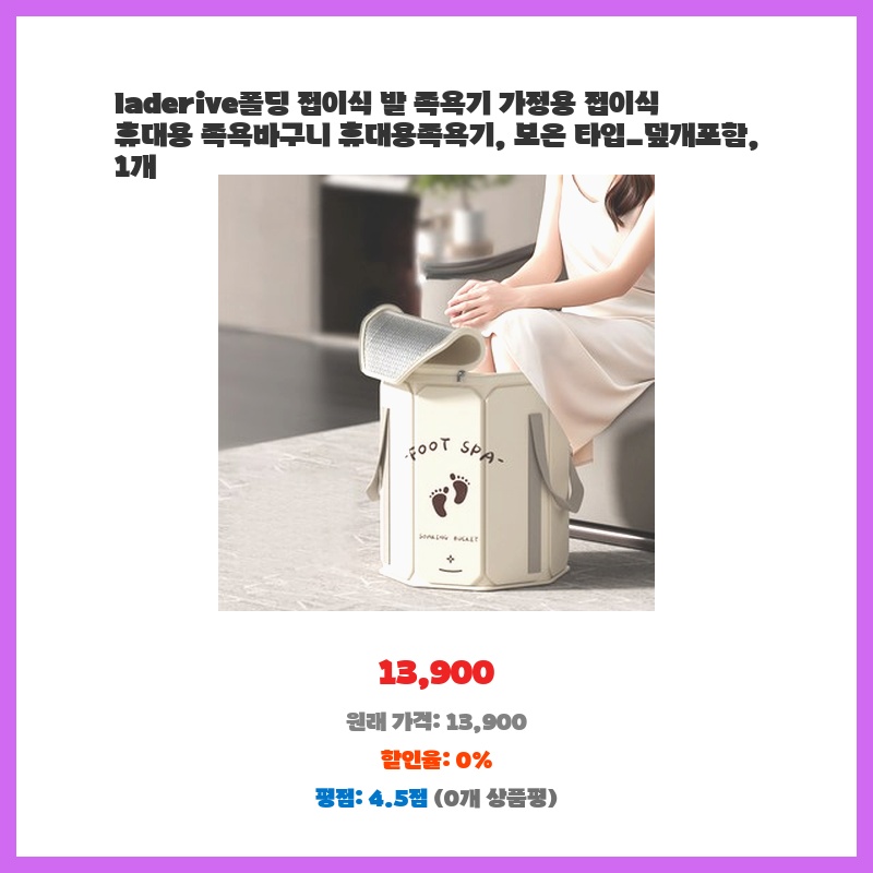따뜻한 물에 발을 담그니 피로가 풀리는 느낌이었어요. 접었다 폈다 편리하고, 색상도 예뻐서 인테리어 효과까지 있네요! 만족합니다.