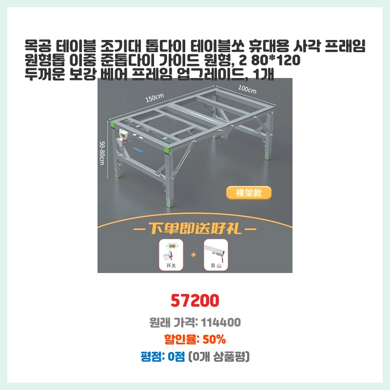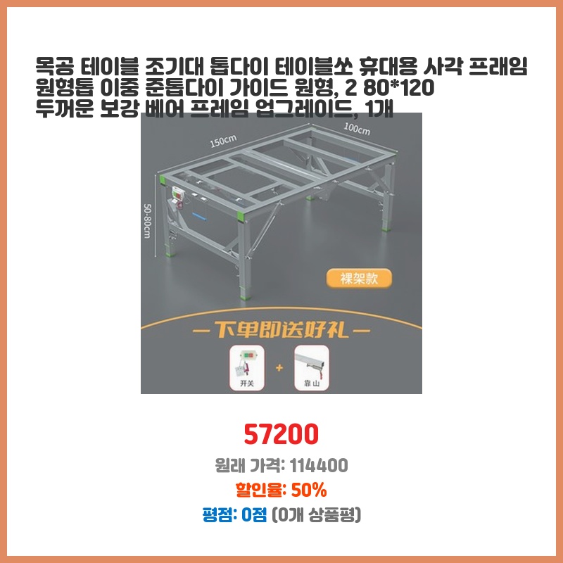 목공 테이블 조기대 톱다이 테이블쏘 휴대용 사각 프래임 원형톱 이중 준톱다이 가이드 원형, 2 80*120 두꺼운 보강 베어 프레임 업그레이드, 1개