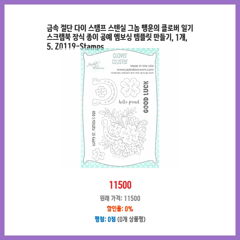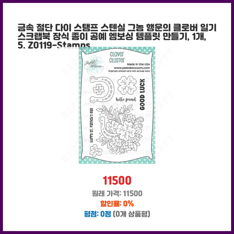 섬세한 금속 재질의 클로버 스탬프가 마음에 들어 구매했습니다. 스크랩북 장식이나 카드 만들기에 유용할 것 같아 기대됩니다. 다양한 종이 재질에 잘 찍히는지 확인하고 싶었습니다.
