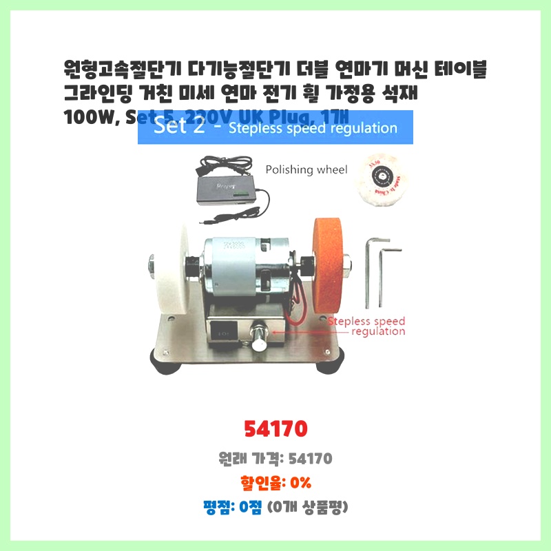 원형고속절단기 다기능절단기 더블 연마기 머신 테이블 그라인딩 거친 미세 연마 전기 휠 가정용 석재 100W, Set 5, 220V UK Plug, 1개