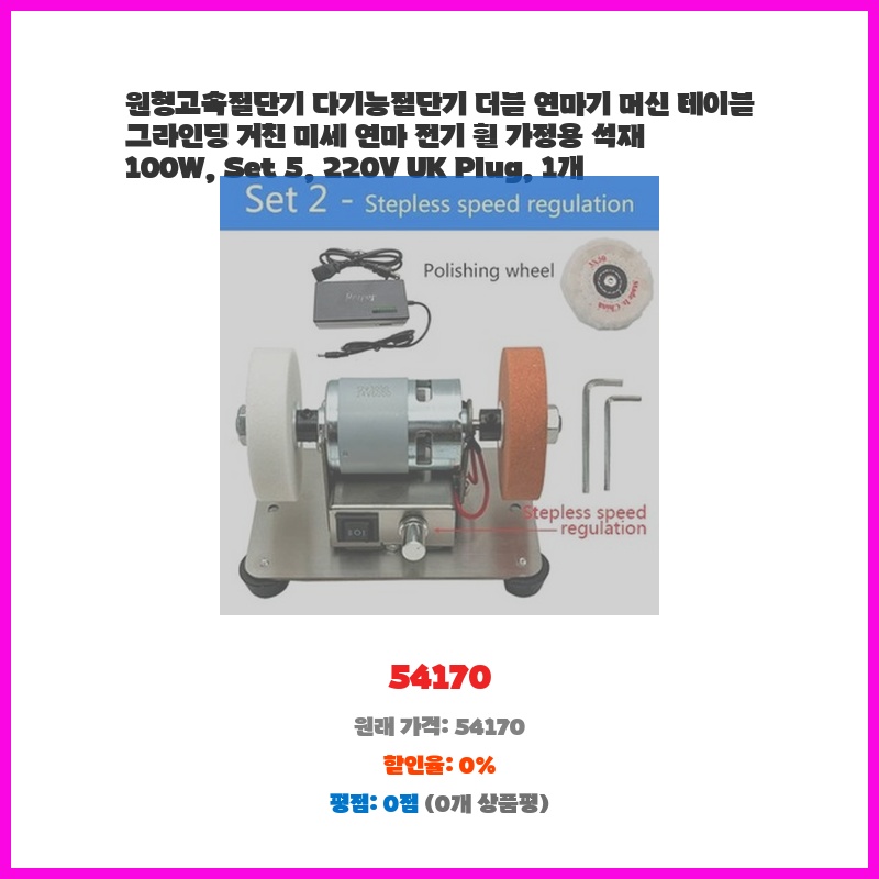 다양한 작업에 활용 가능한 다기능 제품이라 구매했습니다. 원형 고속 절단과 연마가 모두 가능하고, 거친 연마부터 미세 연마까지 가능한 점이 매력적이었습니다. 100W의 적절한 출력과 220V UK 플러그 지원도 장점입니다. 가정용으로 사용하기에 크기가 적당했습니다.