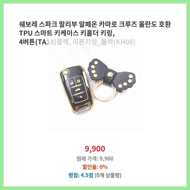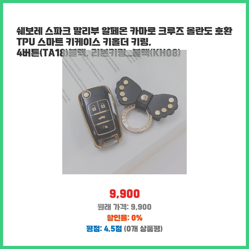 쉐보레 스파크 말리부 알페온 카마로 크루즈 올란도 호환 TPU 스마트 키케이스 키홀더 키링, 4버튼(TA18)블랙, 리본키링_블랙(KH08)