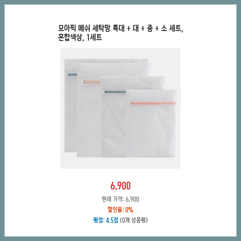 섬세한 옷감부터 속옷까지 사이즈별로 다양하게 갖춰져 있어 편리하고, 튼튼한 메쉬 소재라 오래 쓸 수 있을 것 같아 구매했습니다. 세탁망이 여러 개 필요했는데 세트로 구매하니 가성비도 좋았습니다.