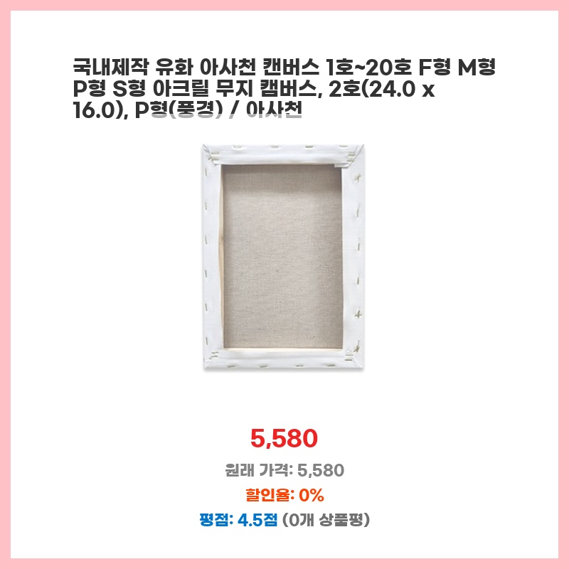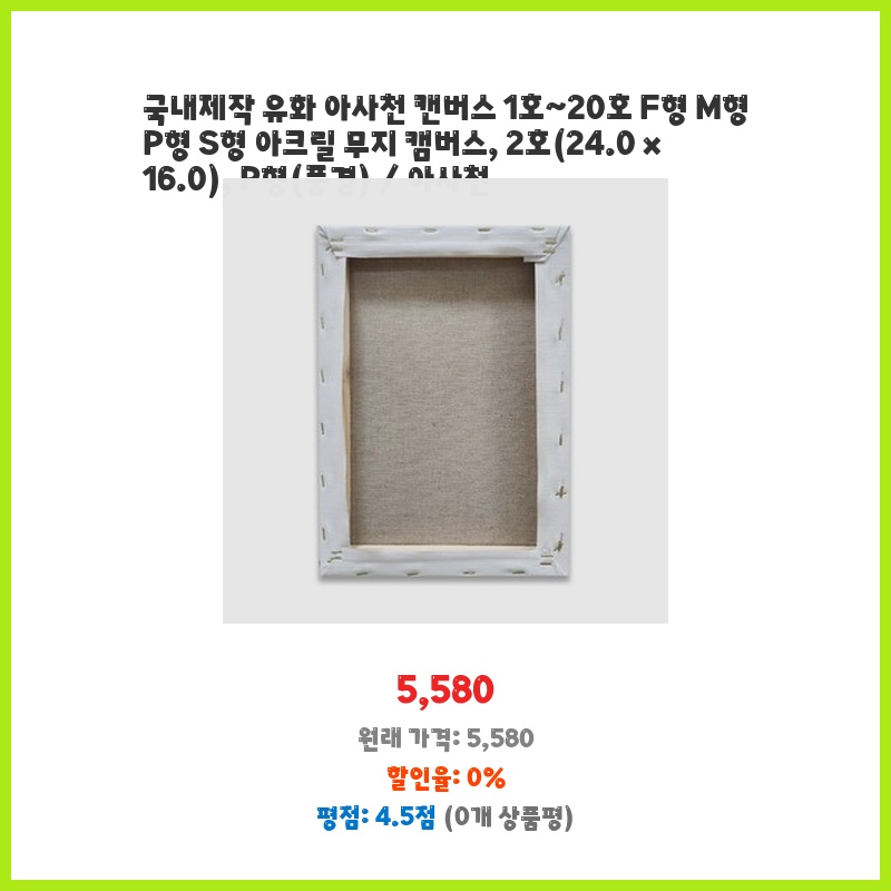 국내제작 유화 아사천 캔버스 1호~20호 F형 M형 P형 S형 아크릴 무지 캠버스, 2호(24.0 x 16.0), P형(풍경) / 아사천