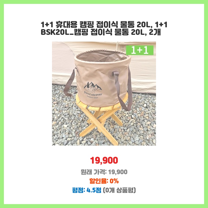 1+1 휴대용 캠핑 접이식 물통 20L, 1+1 BSK20L_캠핑 접이식 물통 20L, 2개
