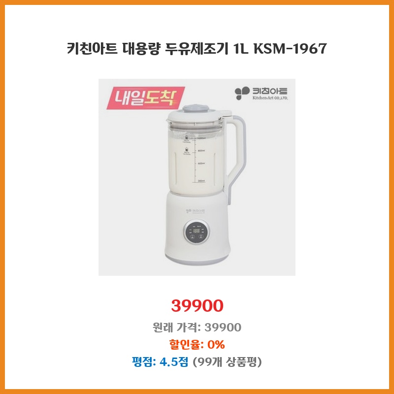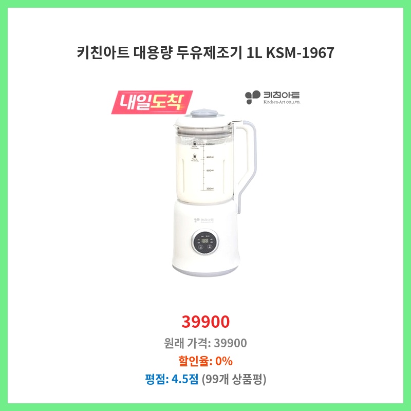 1L 대용량으로 한 번에 많은 양의 두유를 만들 수 있어 좋습니다. 가격도 부담되지 않고, 세척도 편리하다는 후기가 많아 구매했습니다. 직접 만들어 먹으니 안심하고 먹을 수 있어 만족합니다.