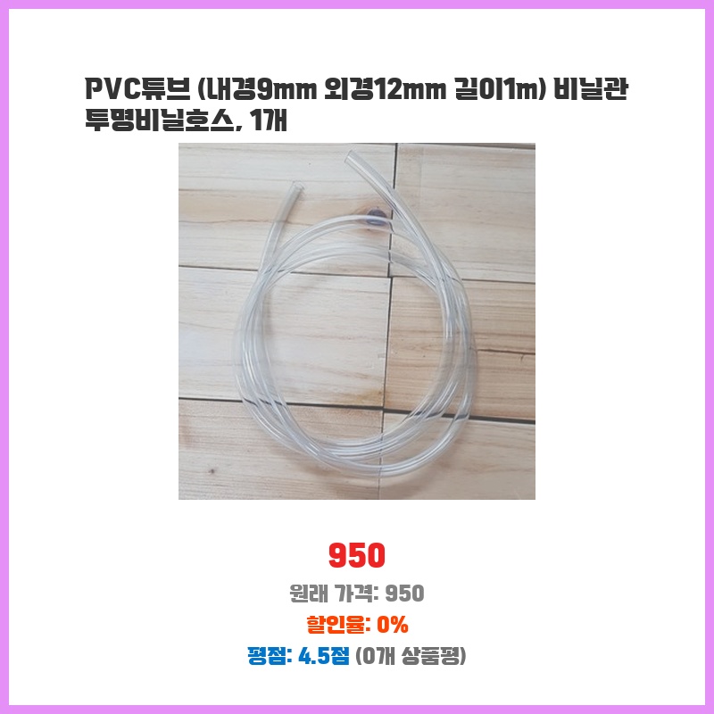 깔끔한 투명 소재와 적당한 내경외경으로 다양한 용도로 활용 가능해서 구매했습니다. 내구성도 괜찮아 보이고 가격도 저렴해서 부담없이 사용할 수 있을 것 같습니다. 작은 프로젝트에 필요한 호스를 찾던 중에 적합한 제품이었습니다.