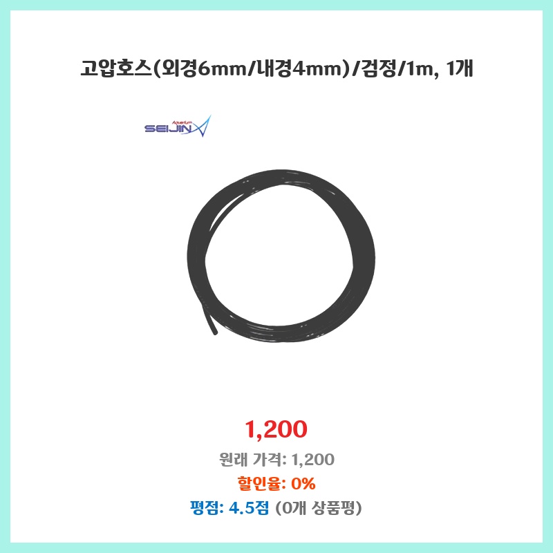 콤팩트한 크기와 견고한 내구성이 필요했는데, 외경 6mm, 내경 4mm의 적절한 사이즈와 1m의 길이가 작업에 딱 맞아서 구매했습니다. 검정색이라 오염도 덜 티나고 관리가 편할 것 같아요. 가격도 저렴해서 부담없었어요.