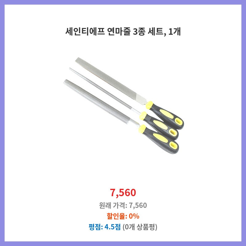 다양한 연마 작업에 필요한 줄이 한 세트로 구성되어 있어 편리하고, 가격 대비 품질이 좋아 여러 종류의 줄을 따로 구매하는 것보다 경제적이라고 판단했습니다. 세인티에프 브랜드에 대한 신뢰도도 구매 결정에 영향을 미쳤습니다.
