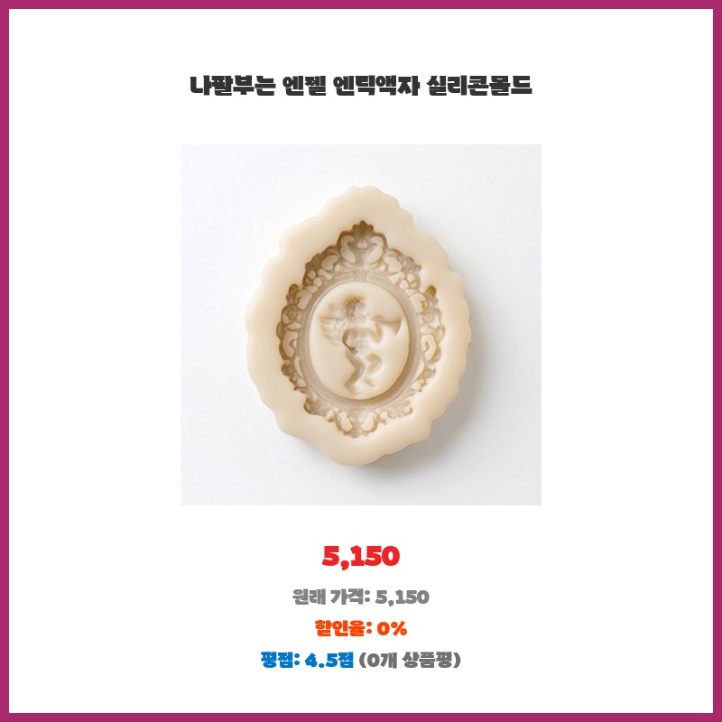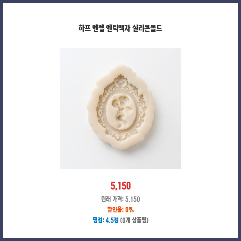 엔틱한 디자인의 액자를 만들고 싶어서 구매했습니다. 실리콘 몰드라 깨끗하게 탈형이 되고, 여러 번 재사용할 수 있다는 점이 매력적이었습니다. 디테일한 하프 엔젤 디자인이 마음에 들었고, 가격도 적당했습니다.