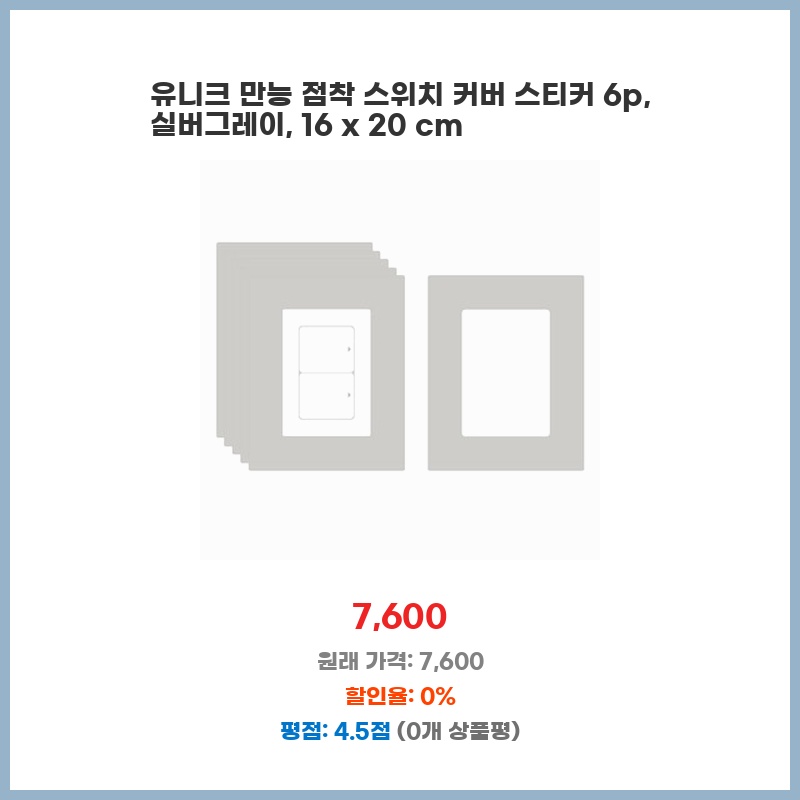 낡은 스위치가 눈에 거슬려서 깔끔하게 바꾸고 싶었어요. 6개들이라 여러 스위치에 사용할 수 있고, 실버그레이 색상이 집 인테리어랑 잘 어울릴 것 같아 구매했습니다. 크기도 적당해서 부착도 편리할 것 같아요.