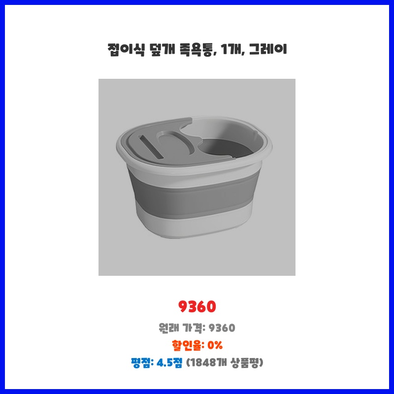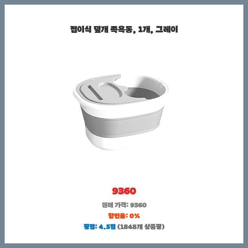 좁은 욕실에서도 편리하게 족욕을 즐기고 싶어 구매했습니다. 접이식이라 사용하지 않을 때는 부피를 줄일 수 있고, 그레이 색상도 깔끔해서 마음에 듭니다. 무엇보다 가격 대비 품질이 좋아 만족스럽습니다.