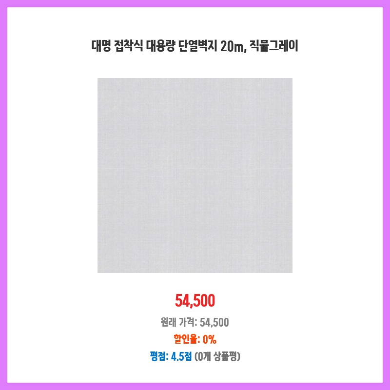겨울철 추위와 여름철 더위가 심해서 단열 효과가 좋은 벽지를 찾던 중, 접착식이라 시공이 간편하고 크레용 라일락 색상이 마음에 들어 구매했습니다. 합리적인 가격에 깔끔한 디자인까지 만족스러워요.