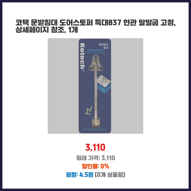 코텍 문받침대 도어스토퍼 특대837 현관 말발굽 고정, 상세페이지 참조, 1개