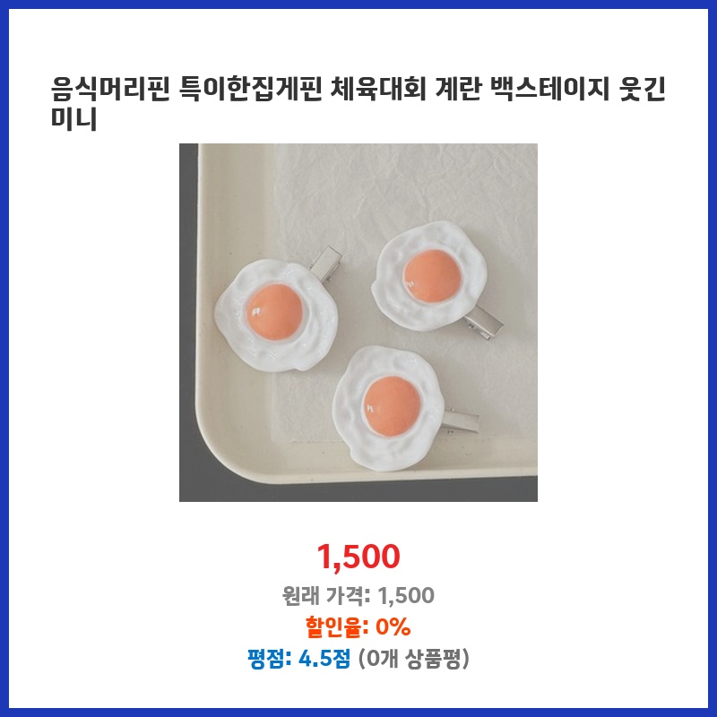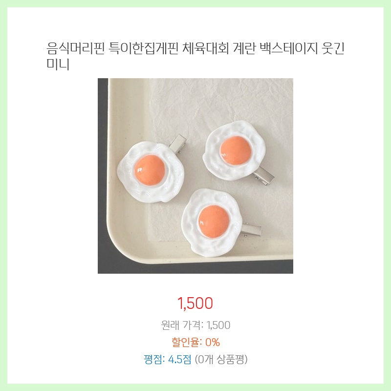 음식머리핀 특이한집게핀 체육대회 계란 백스테이지 웃긴 미니