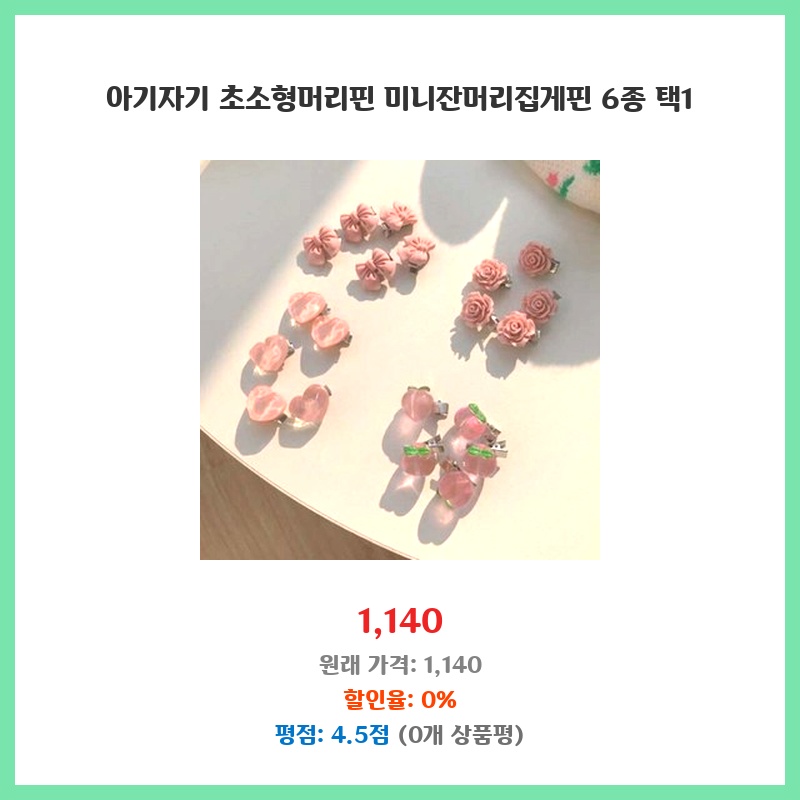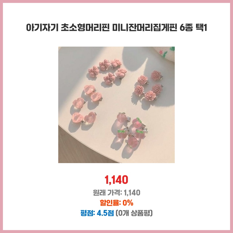 아기자기 초소형머리핀 미니잔머리집게핀 6종 택1